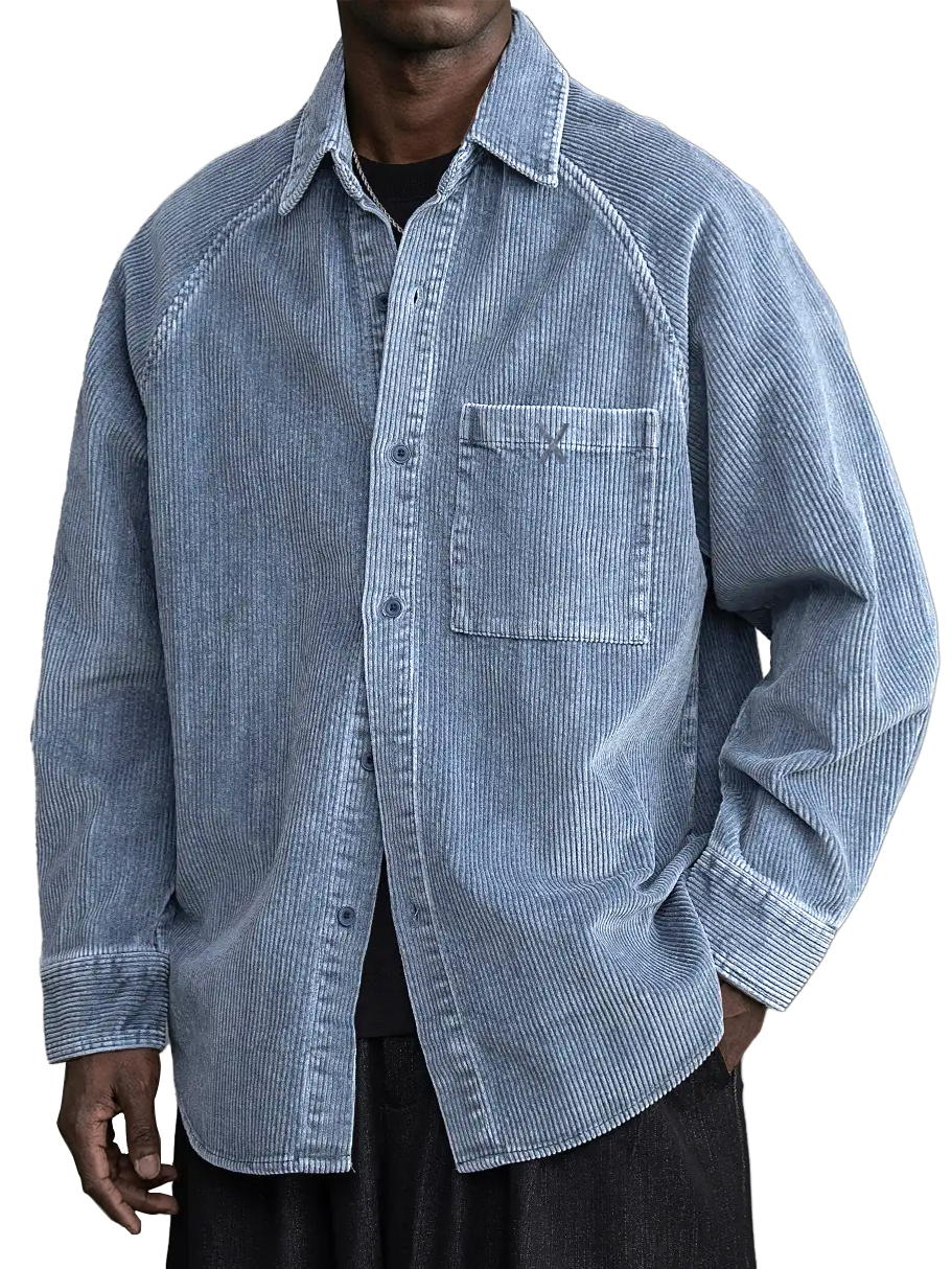 Men's Casual Vintage Pocket X Embroidered Corduroy Long Sleeved Shirt