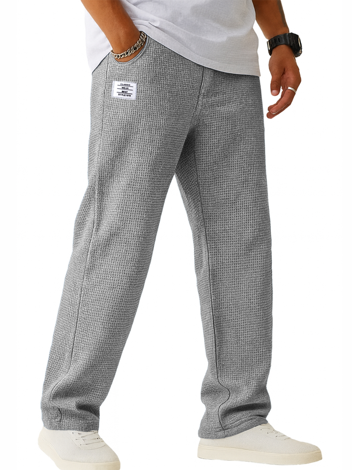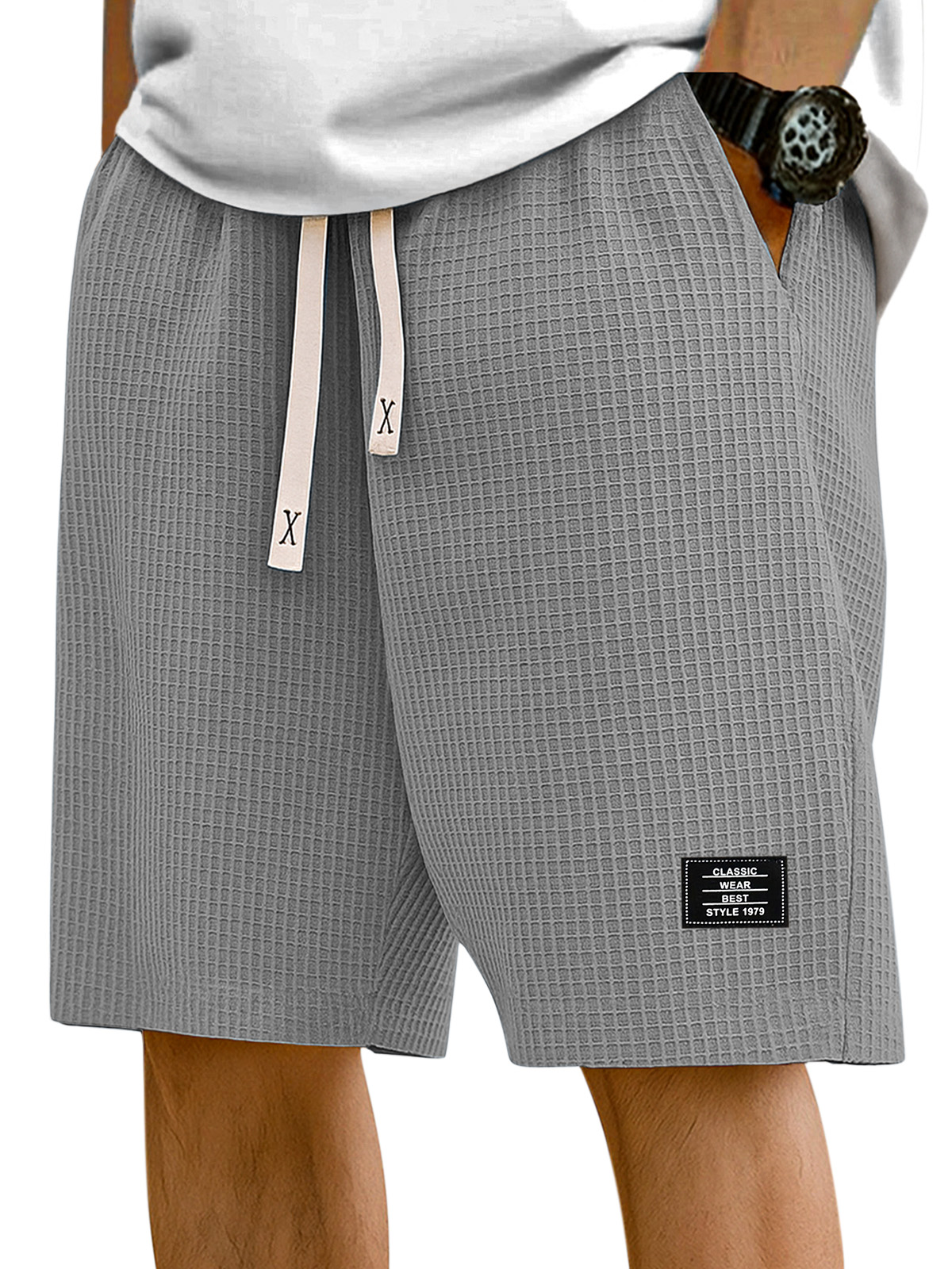 Men's Simple Solid Color Waffle Texture Casual Shorts