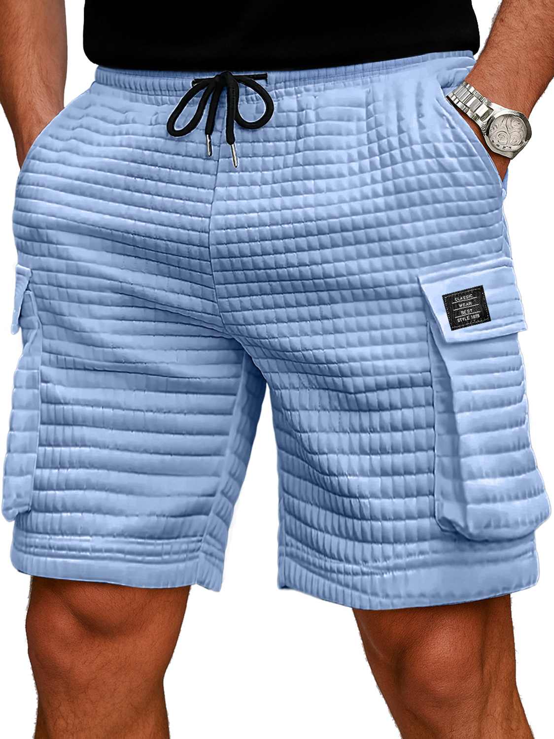 Men's Simple Solid Color Waffle Texture Casual Shorts