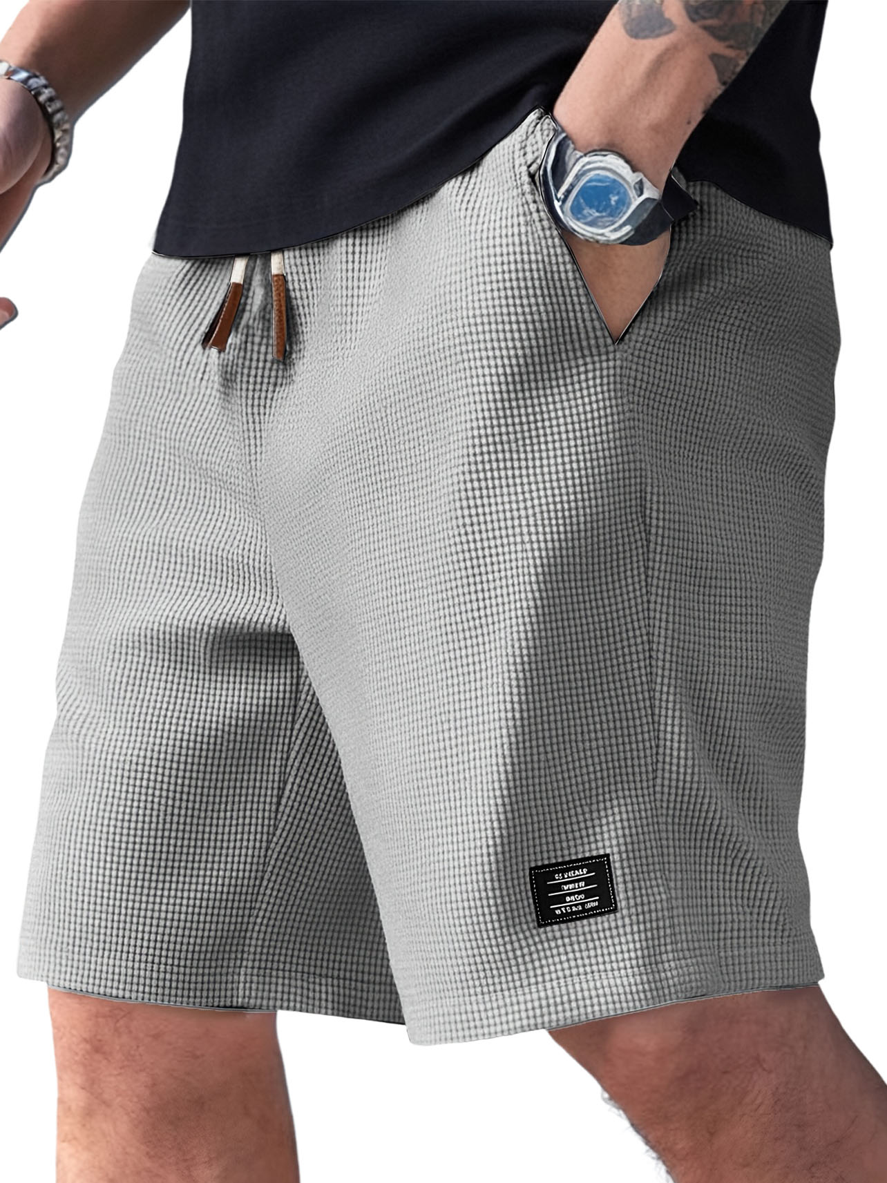 Men's Casual Retro Waffle Logo Comfort Shorts