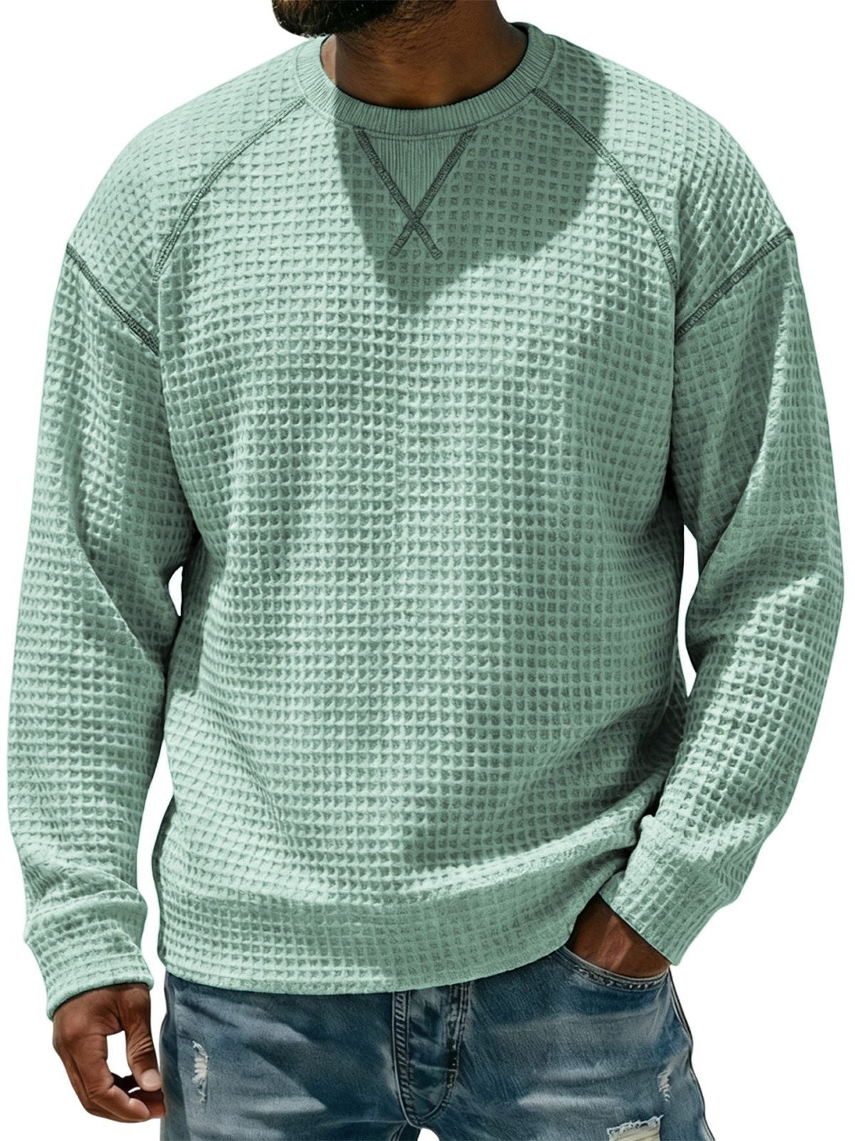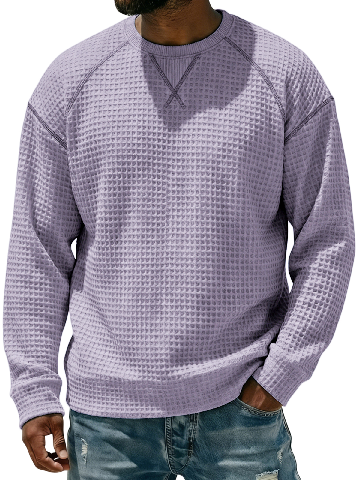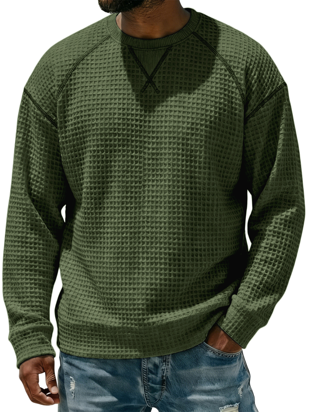 Men's Breathable Waffle Textured Raglan Sleeve Basic Pullover T-shirt