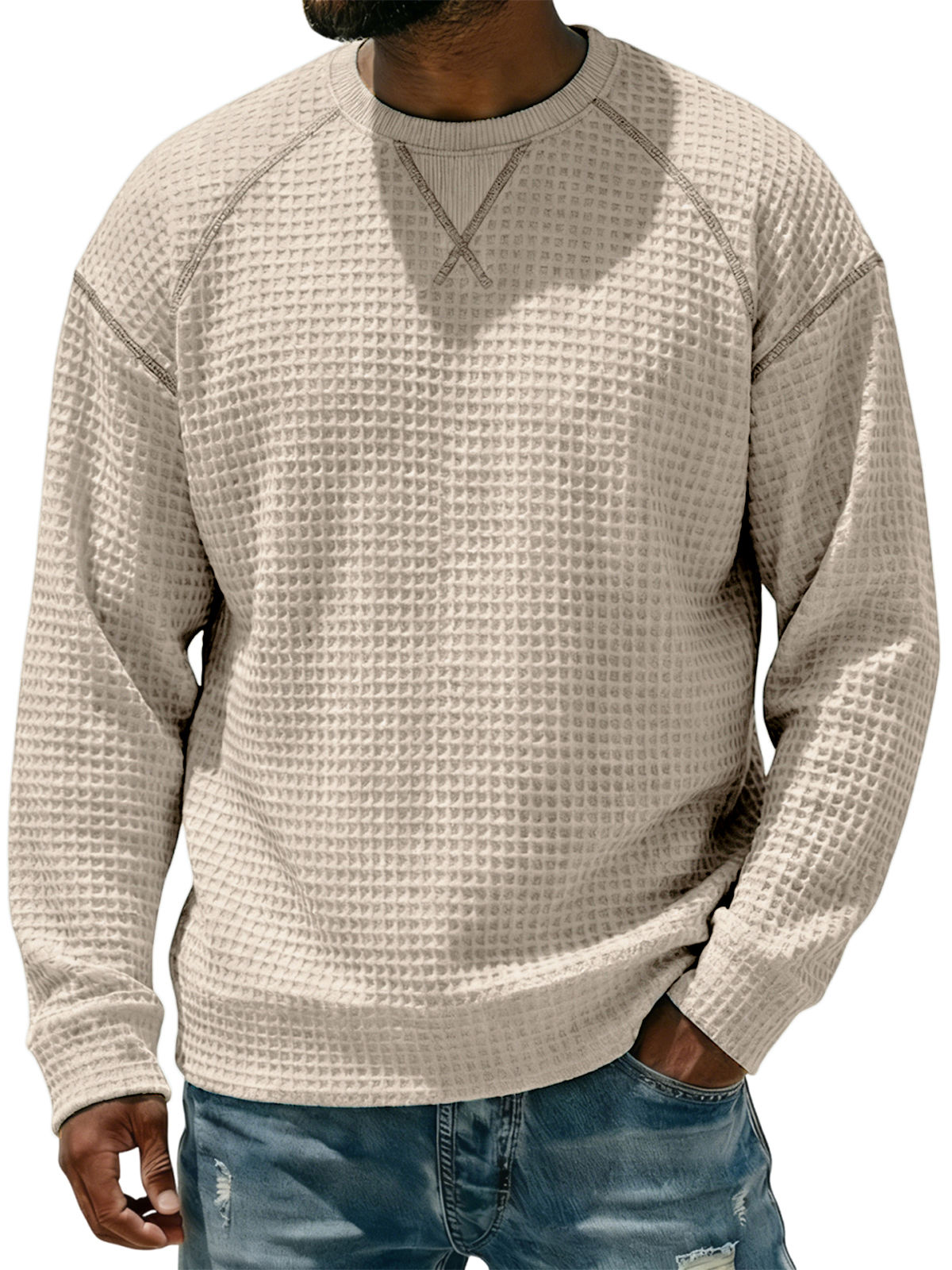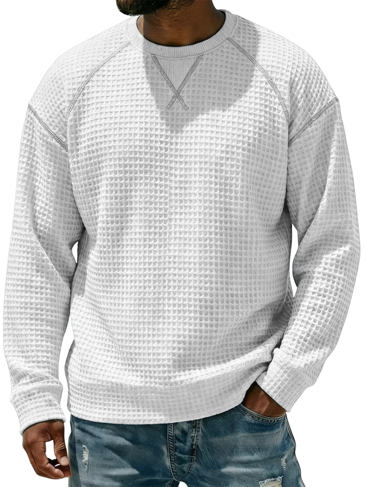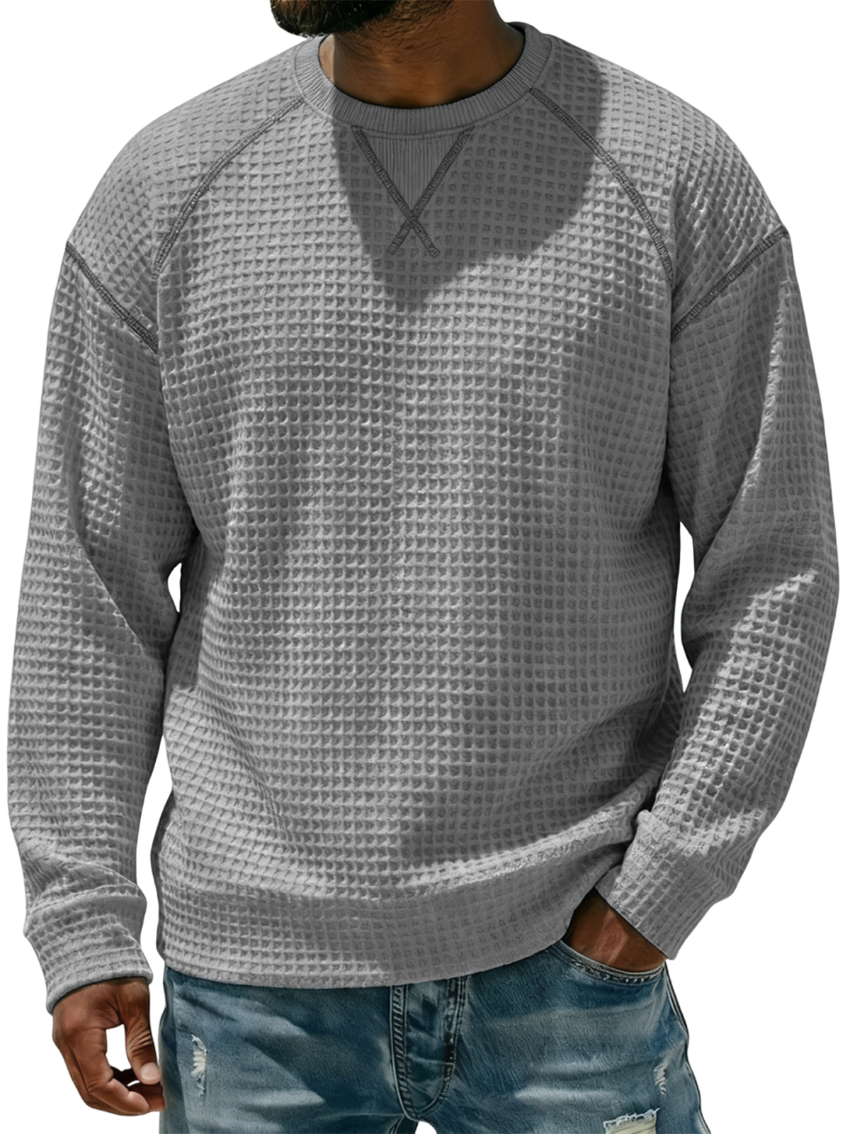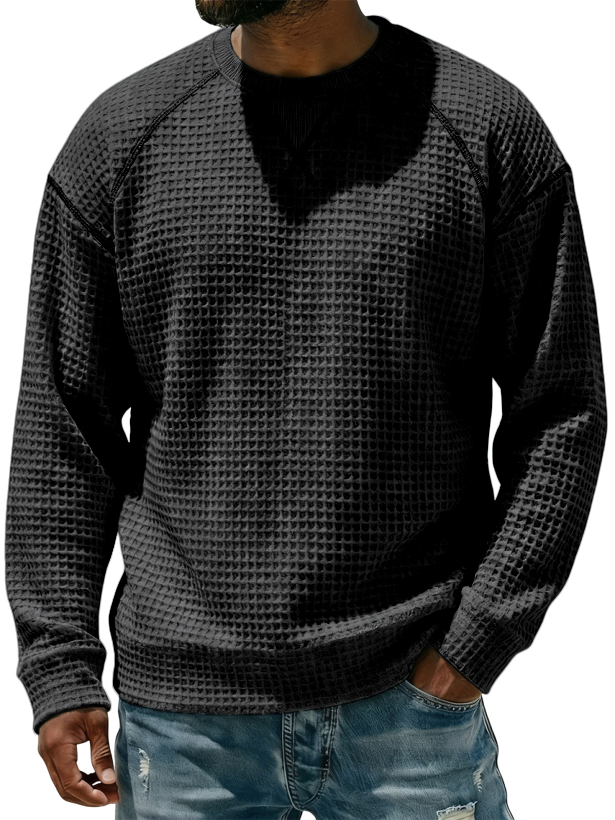 Men's Breathable Waffle Textured Raglan Sleeve Basic Pullover T-shirt