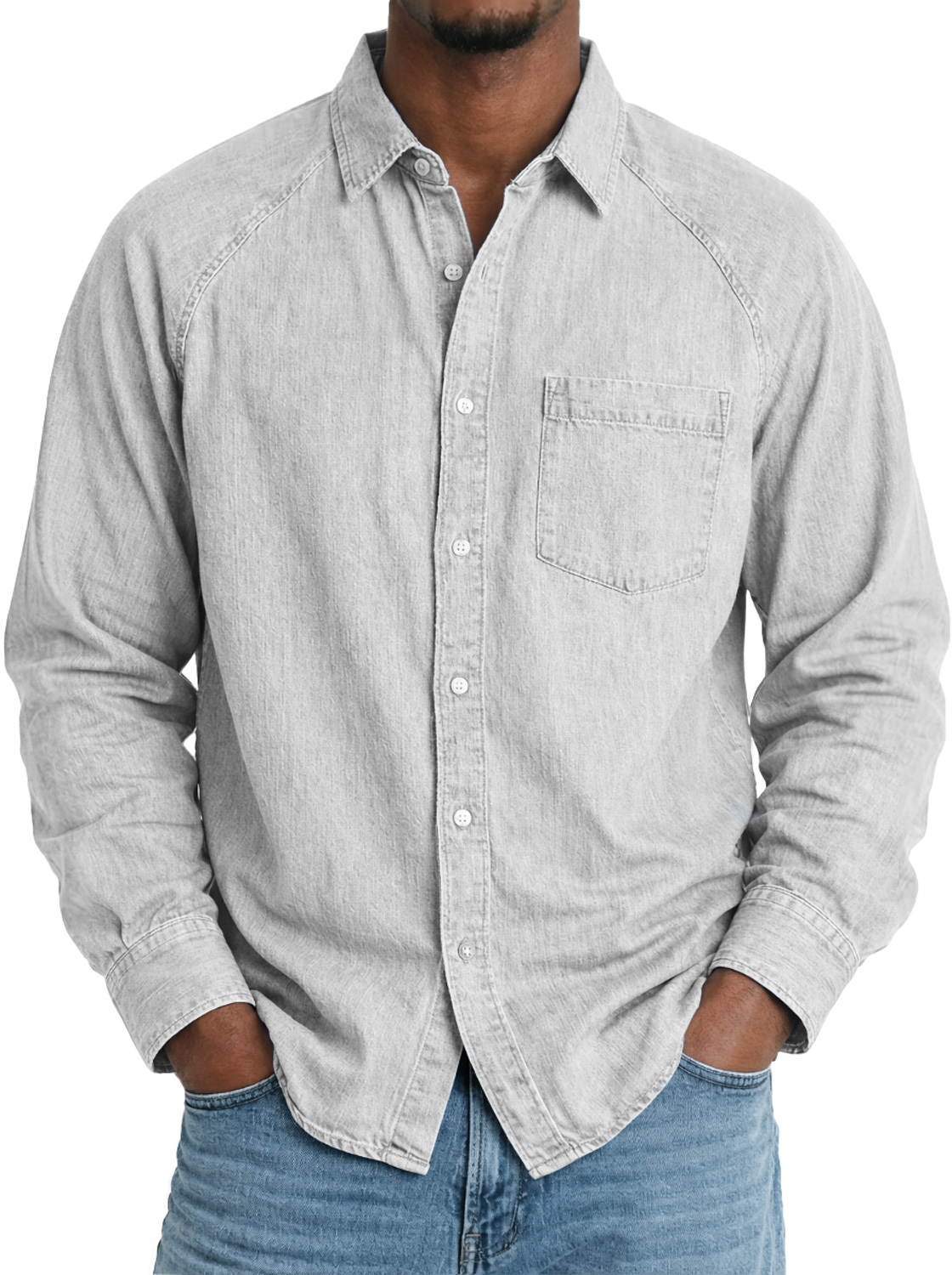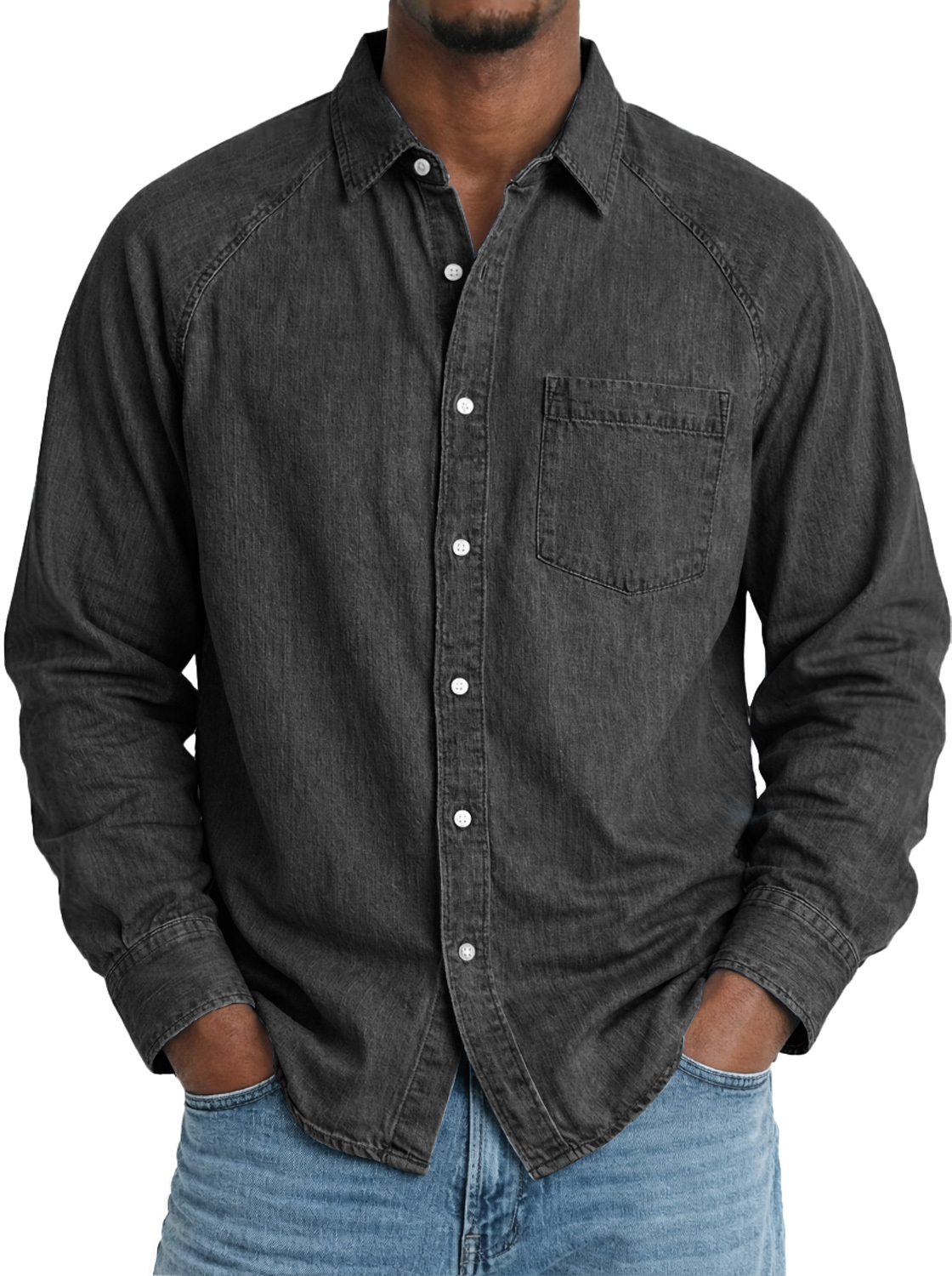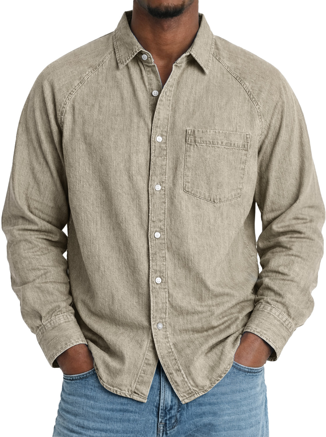 Men's Comfortable Raglan-sleeved Casual Long-sleeved Shirt With Pockets