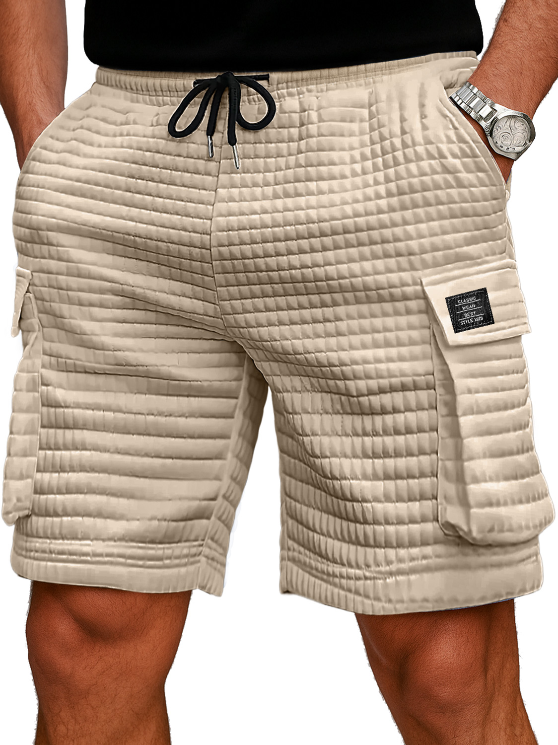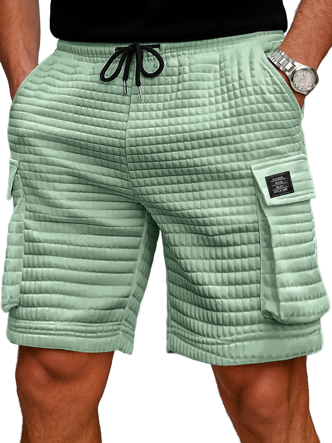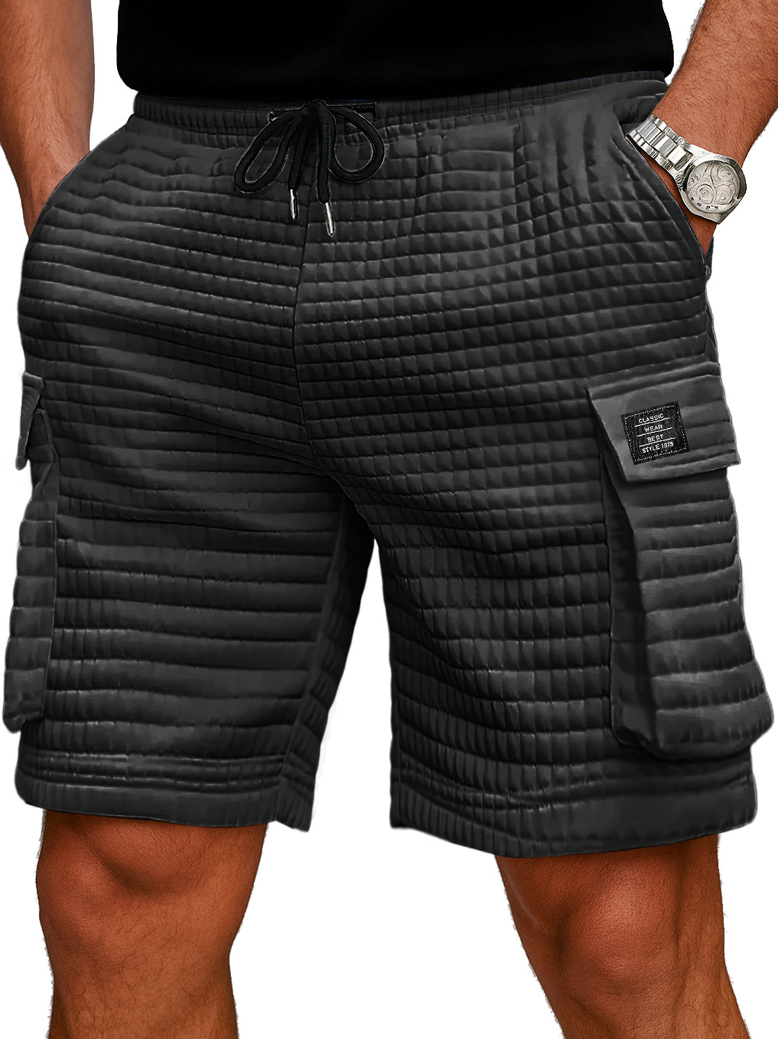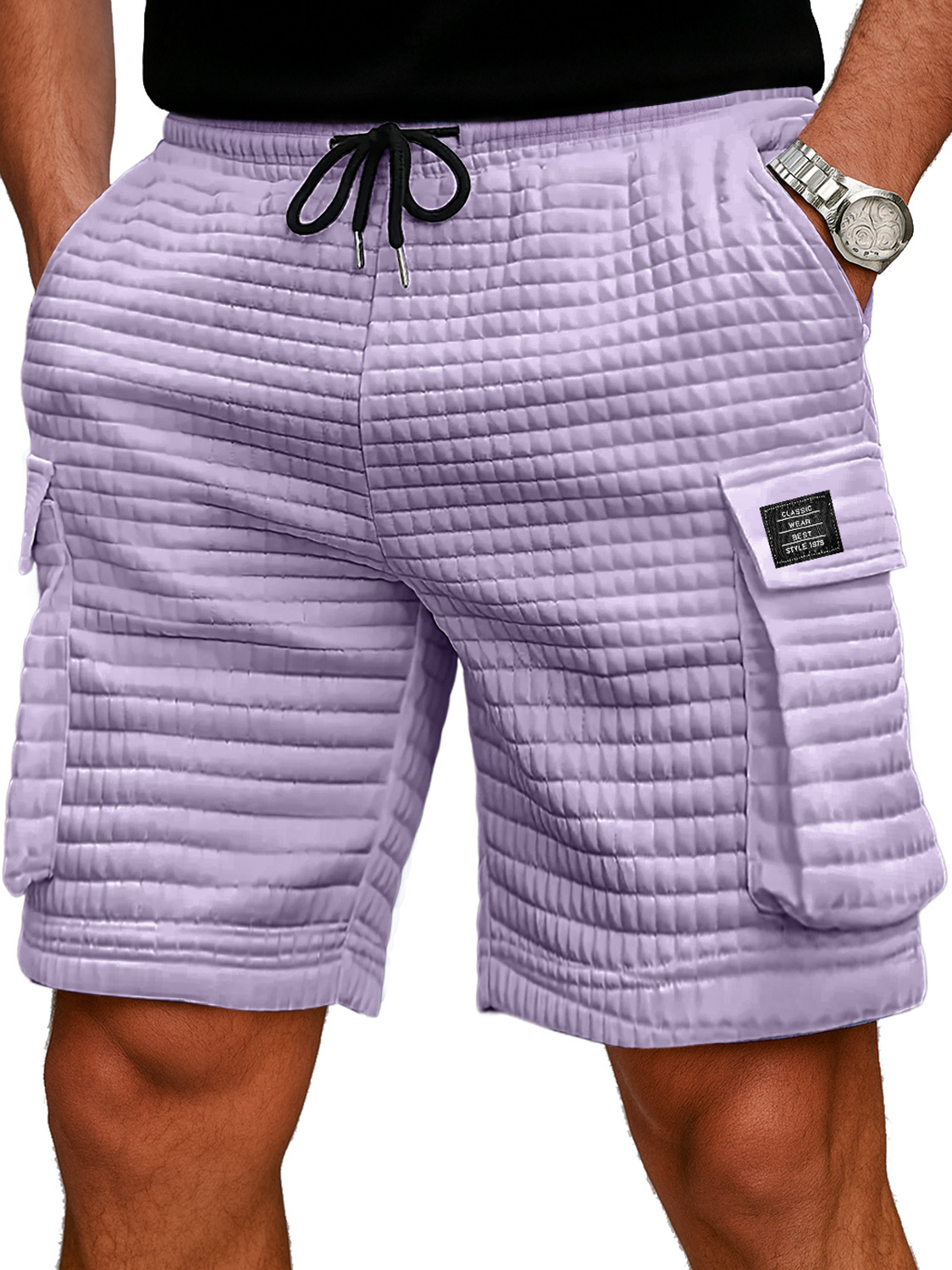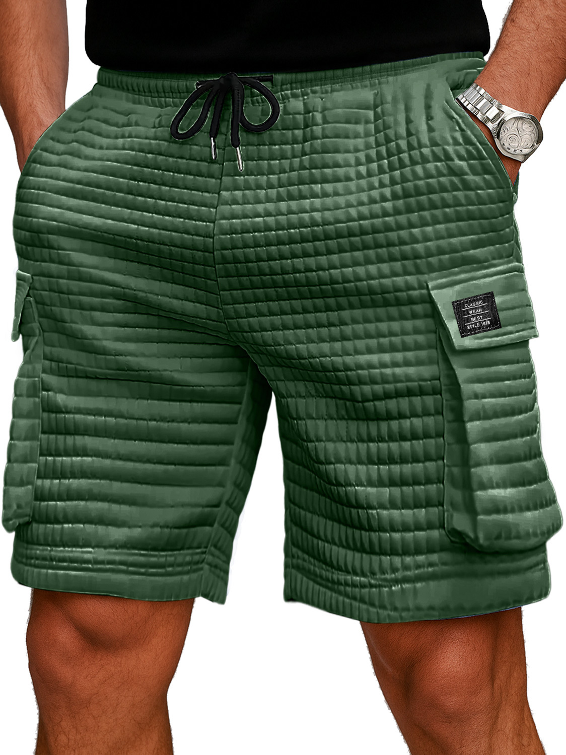 Men's Everyday Multi-Pocket Small Check Embroidered Logo Casual Shorts