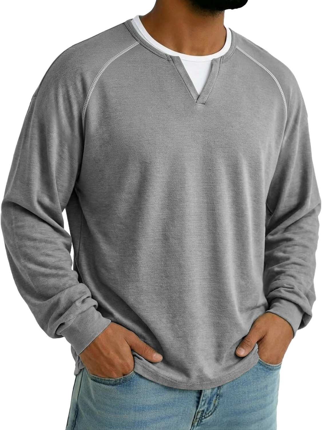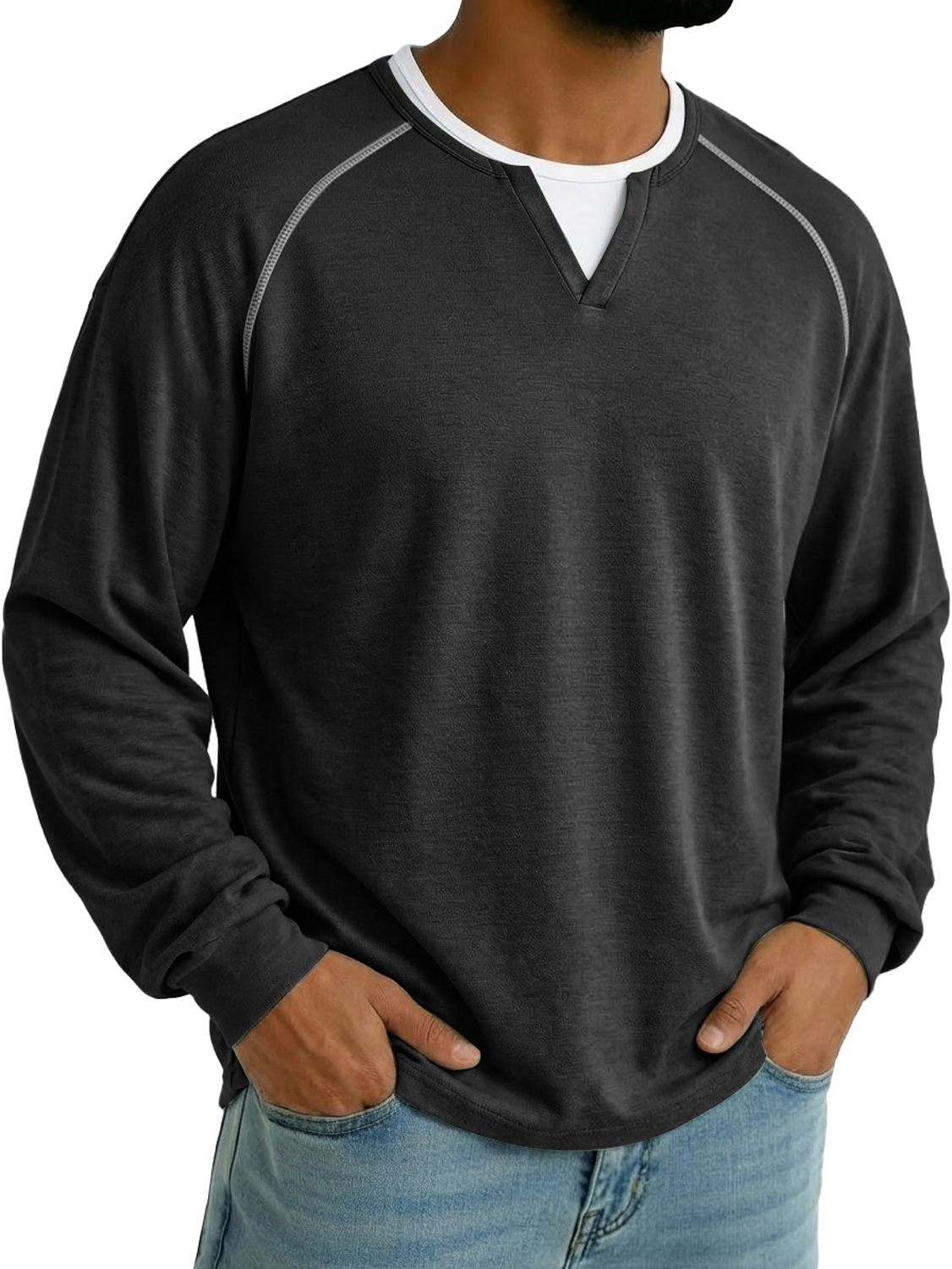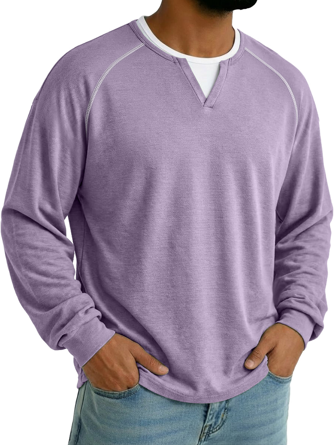 Men's Faux Two-piece Double-layered Collar Raglan Sleeve Casual Long-sleeved T-shirt