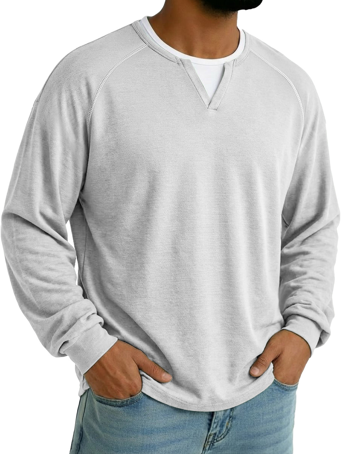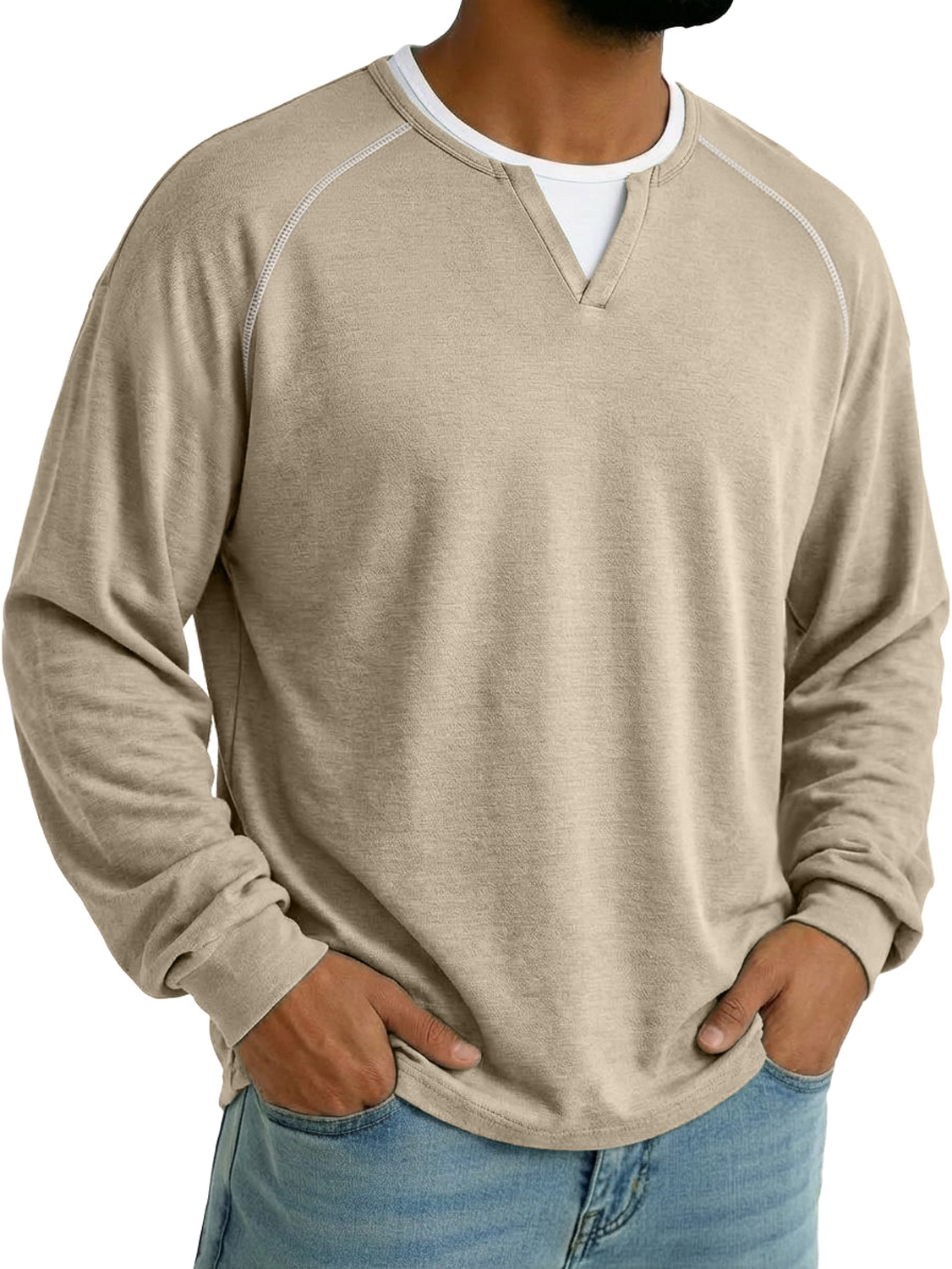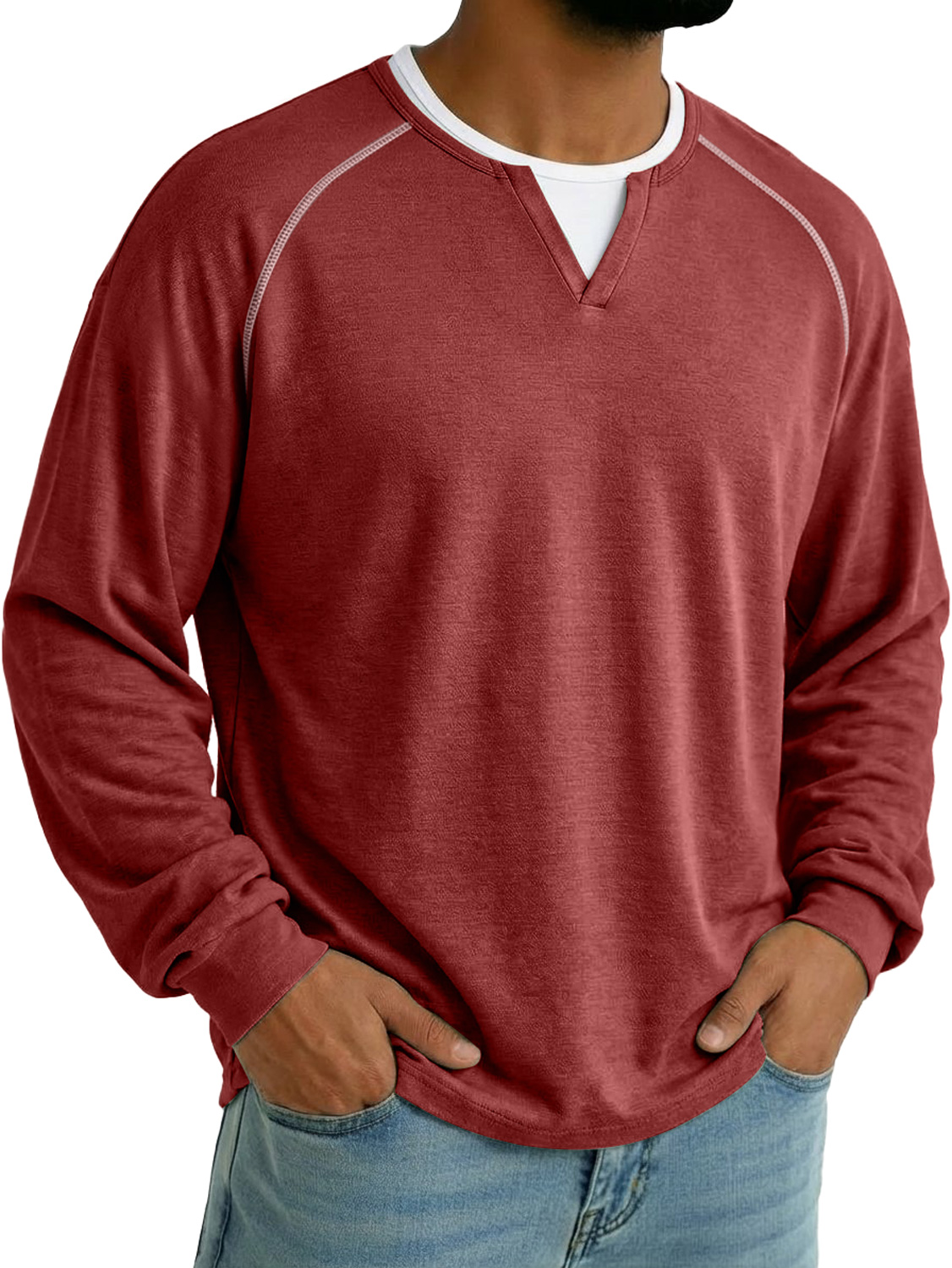 Men's Faux Two-piece Double-layered Collar Raglan Sleeve Casual Long-sleeved T-shirt