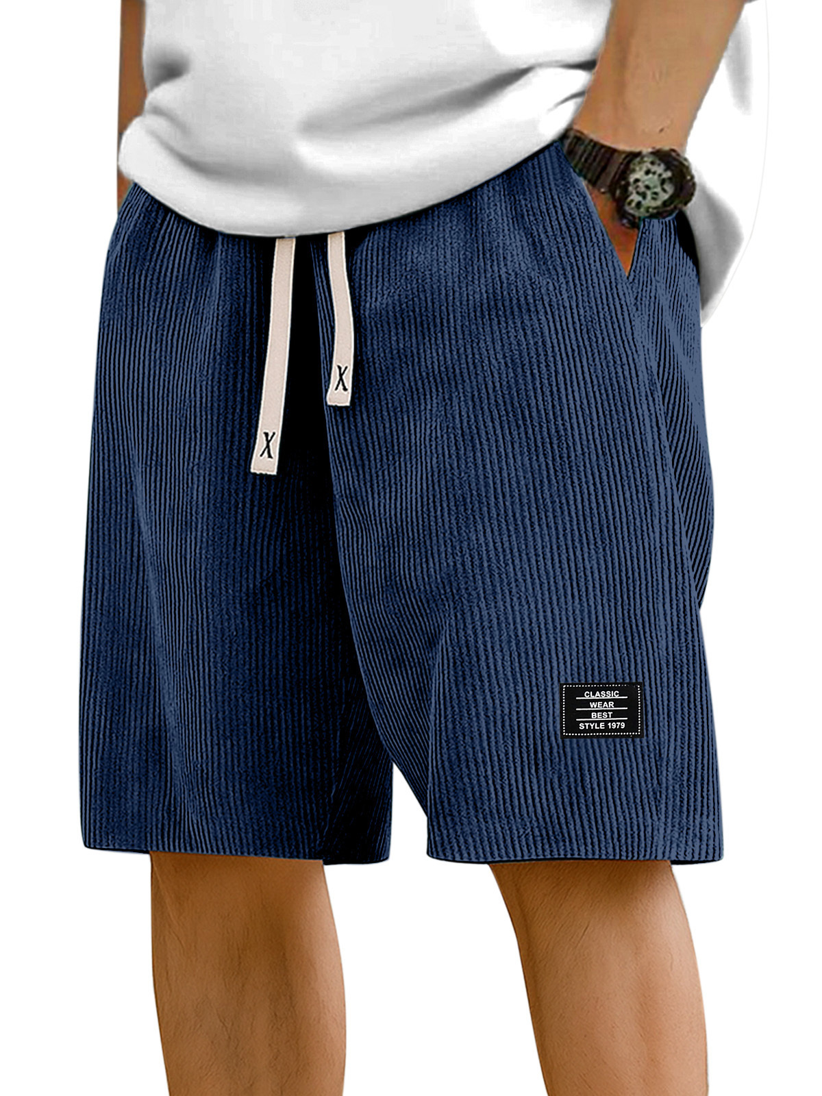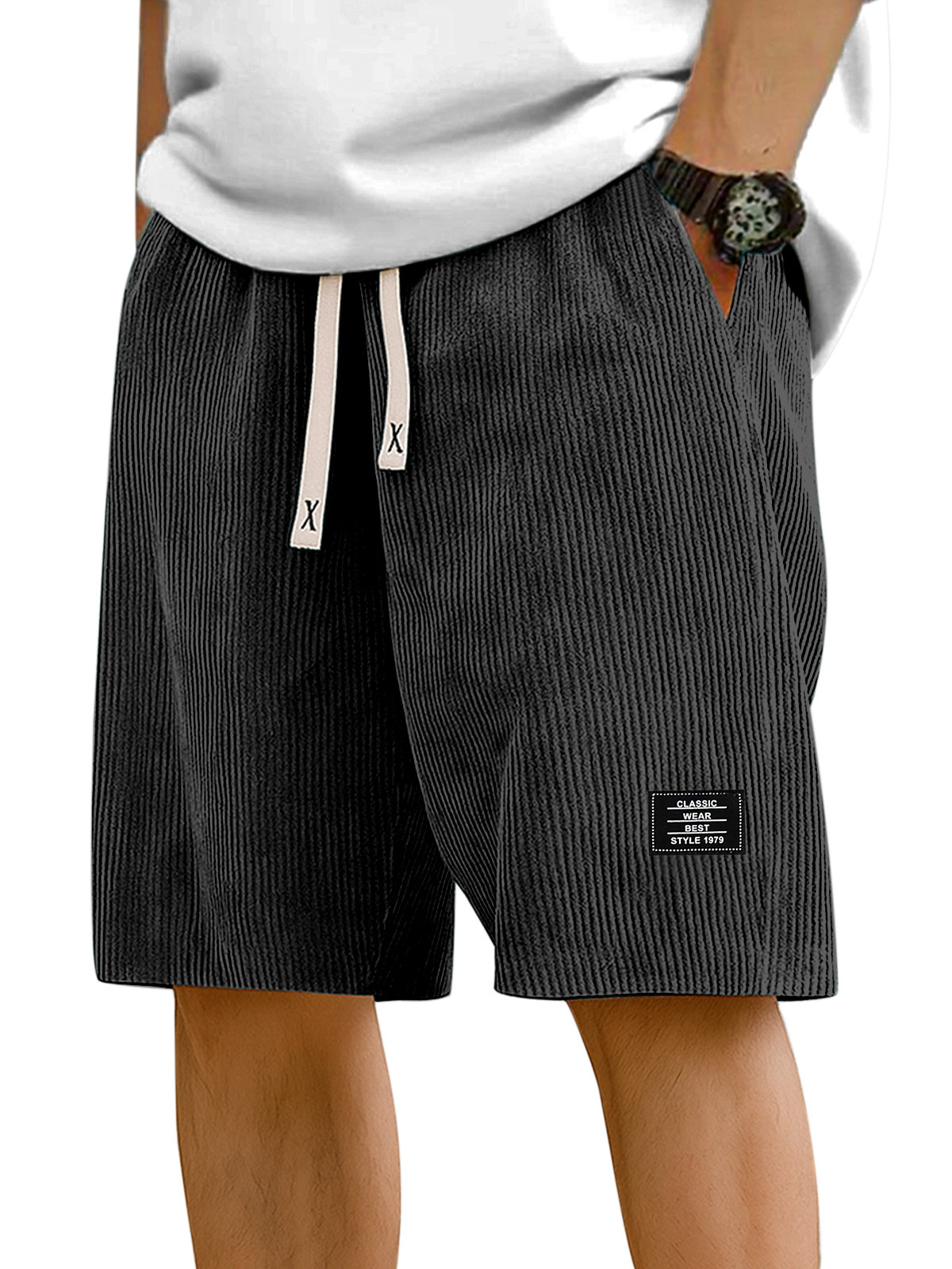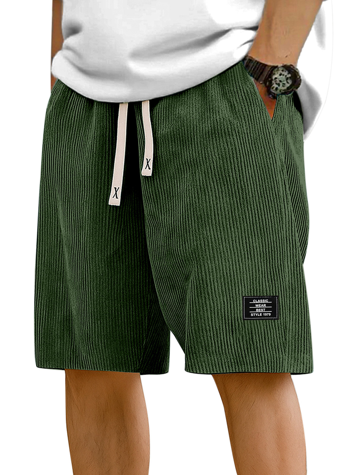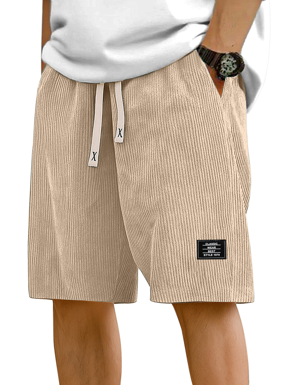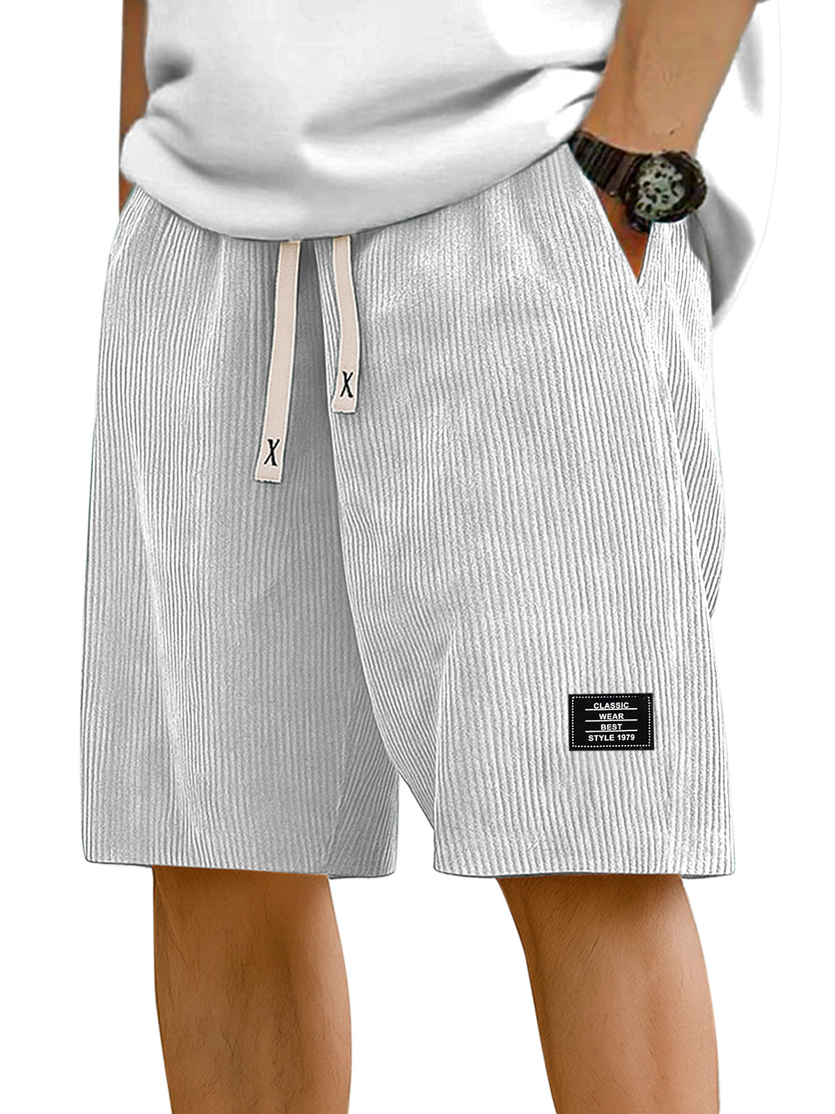 Men's Simple Solid Color Pit Stripe Logo Casual Shorts