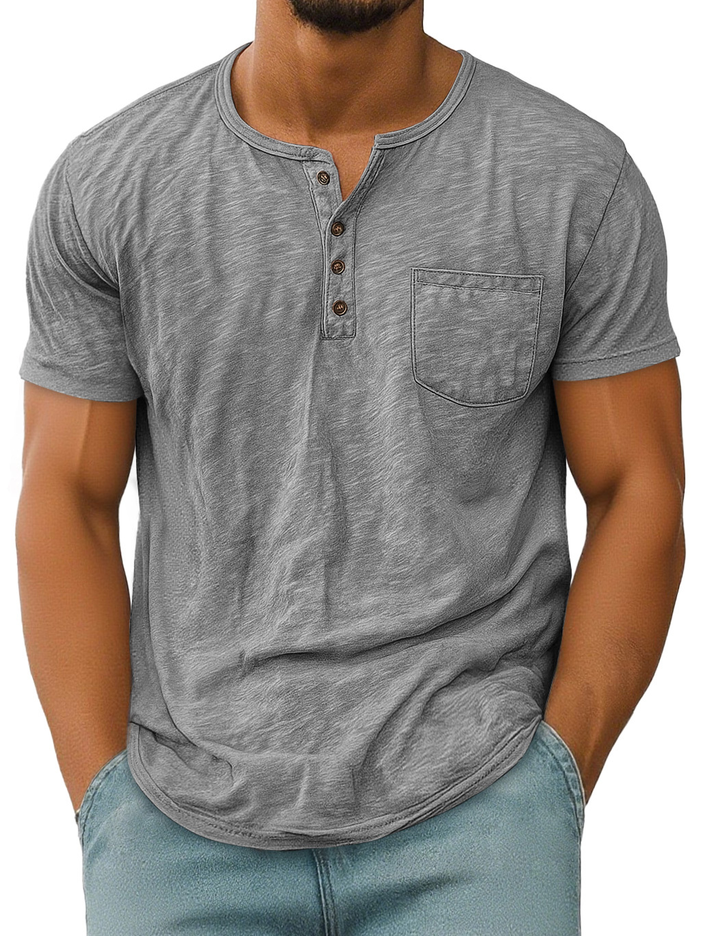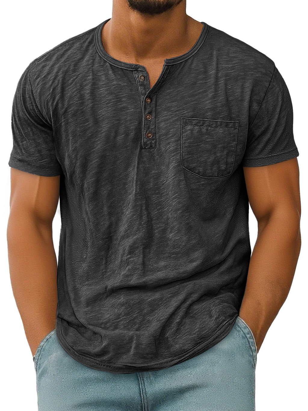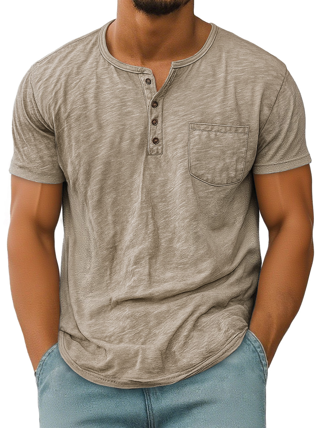 Men's Vintage Casual Pocket Short Sleeve Henley