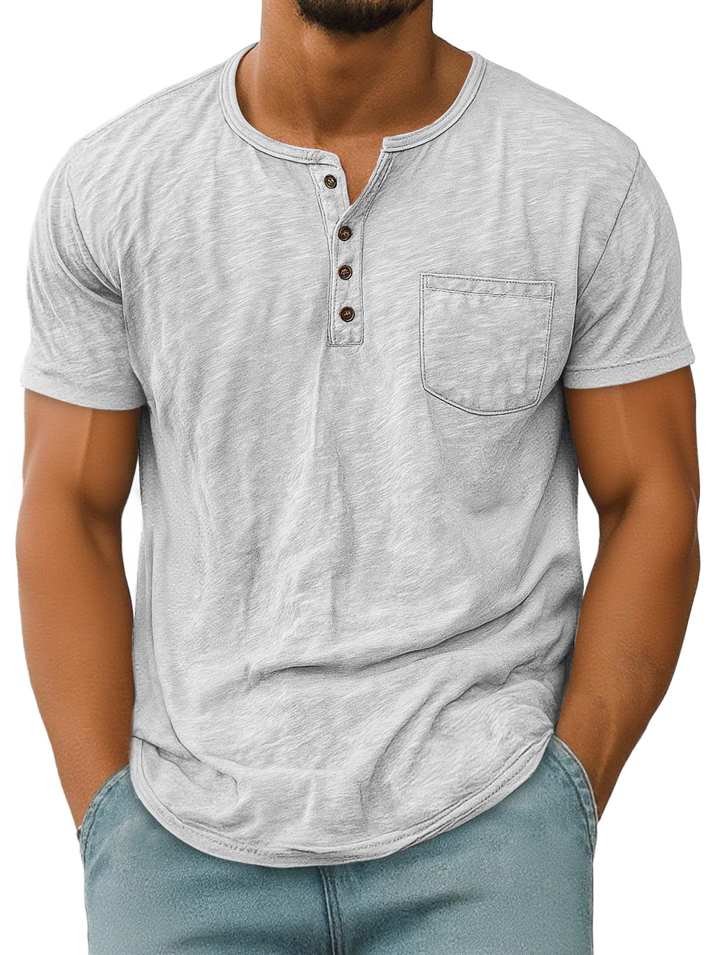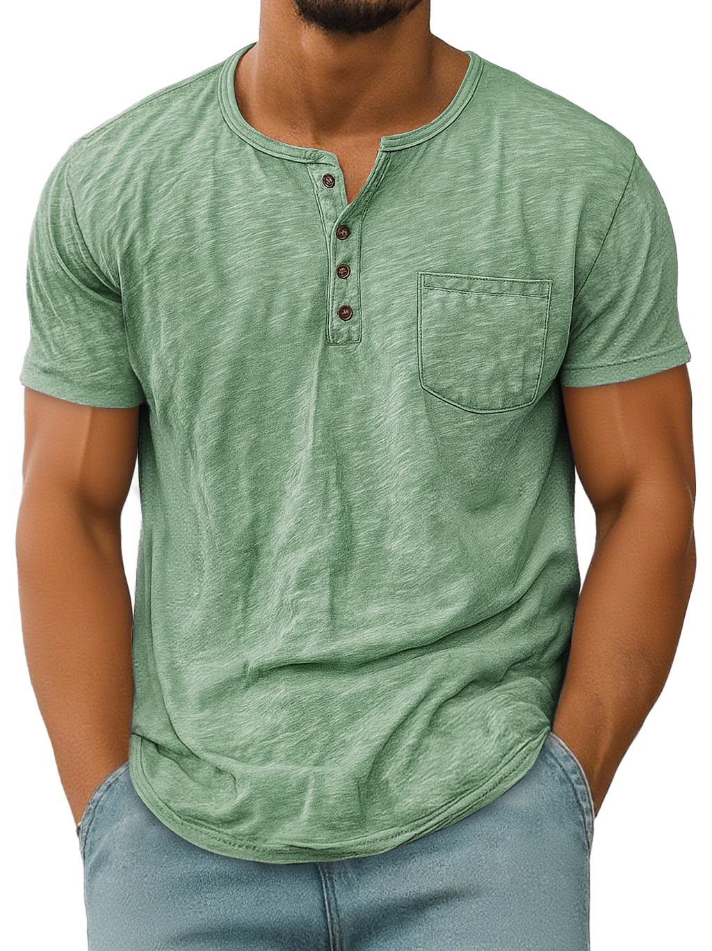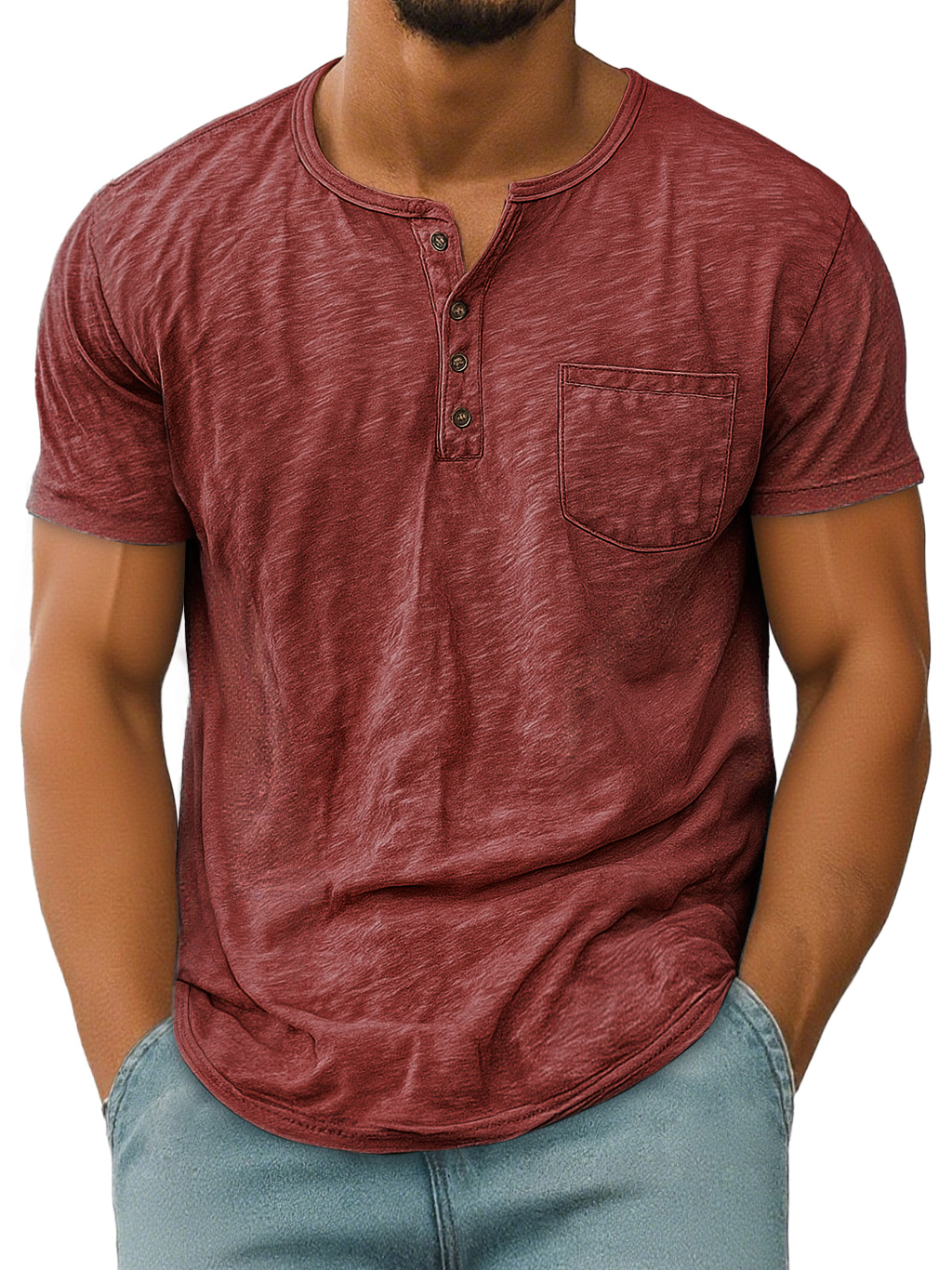 Men's Vintage Casual Pocket Short Sleeve Henley