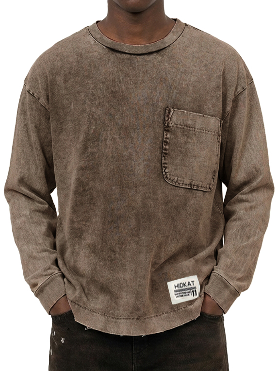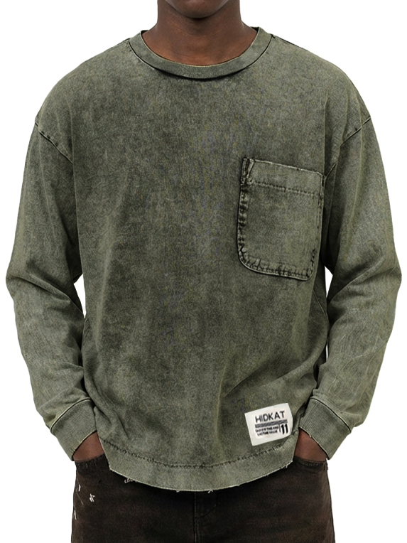 Men's Vintage Washed And Distressed Cotton Long Sleeved T-shirt