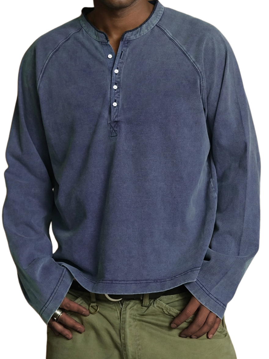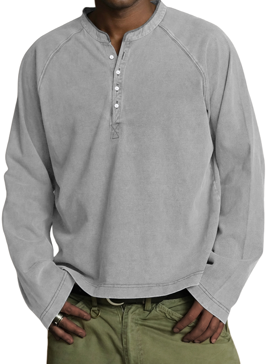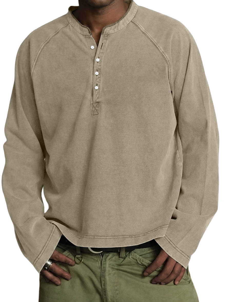 Men's Vintage Washed Cotton Henley Long-Sleeve T-Shirt