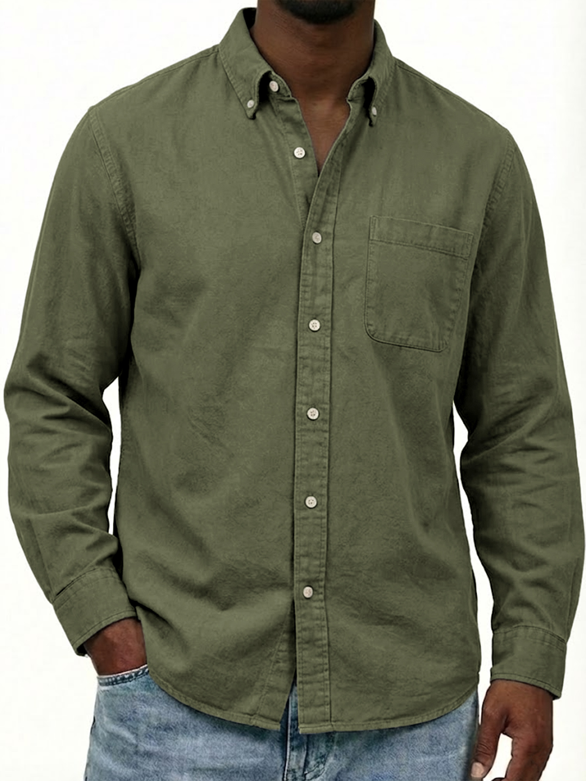 Men's Work Wear Cotton Oxford Button-down Long Sleeve Casual Pocket Shirt